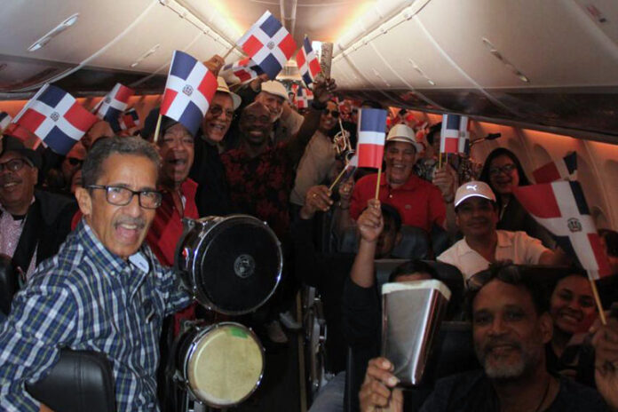La actividad contó con la participación del emblemático grupo Bonyé, reconocido por sus presentaciones en la Ciudad Colonial de Santo Domingo y por su aporte a la preservación y difusión del merengue y otros ritmos caribeños. Con una trayectoria que los ha convertido en referentes de la música en vivo para locales y turistas, Bonyé llevó su energía característica a bordo, interpretando merengues tradicionales mientras pasajeros ondeaban banderas dominicanas a más de 30 mil pies de altura.